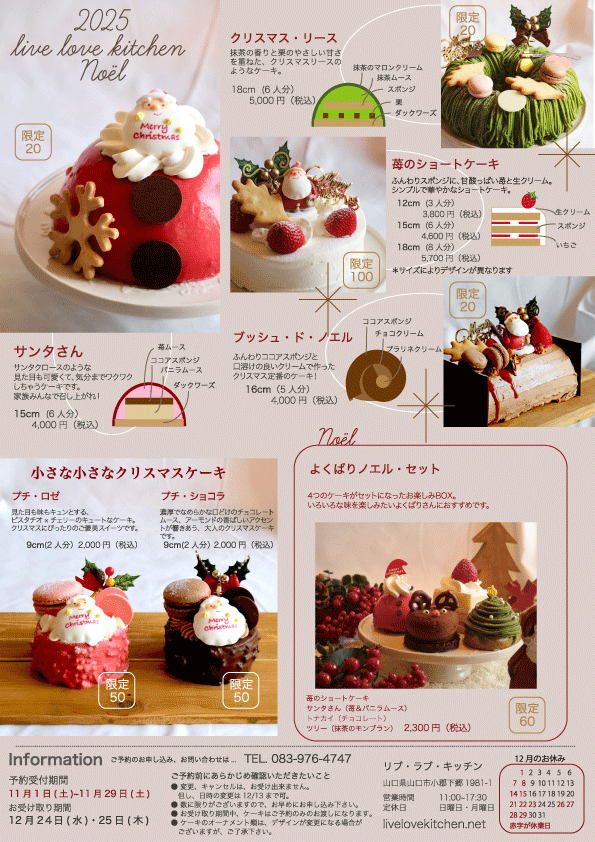 定休日 : 毎週日曜日・毎週月曜日(定休日以外の臨時休業の お知らせはTOPページのカレンダーをご確認ください)